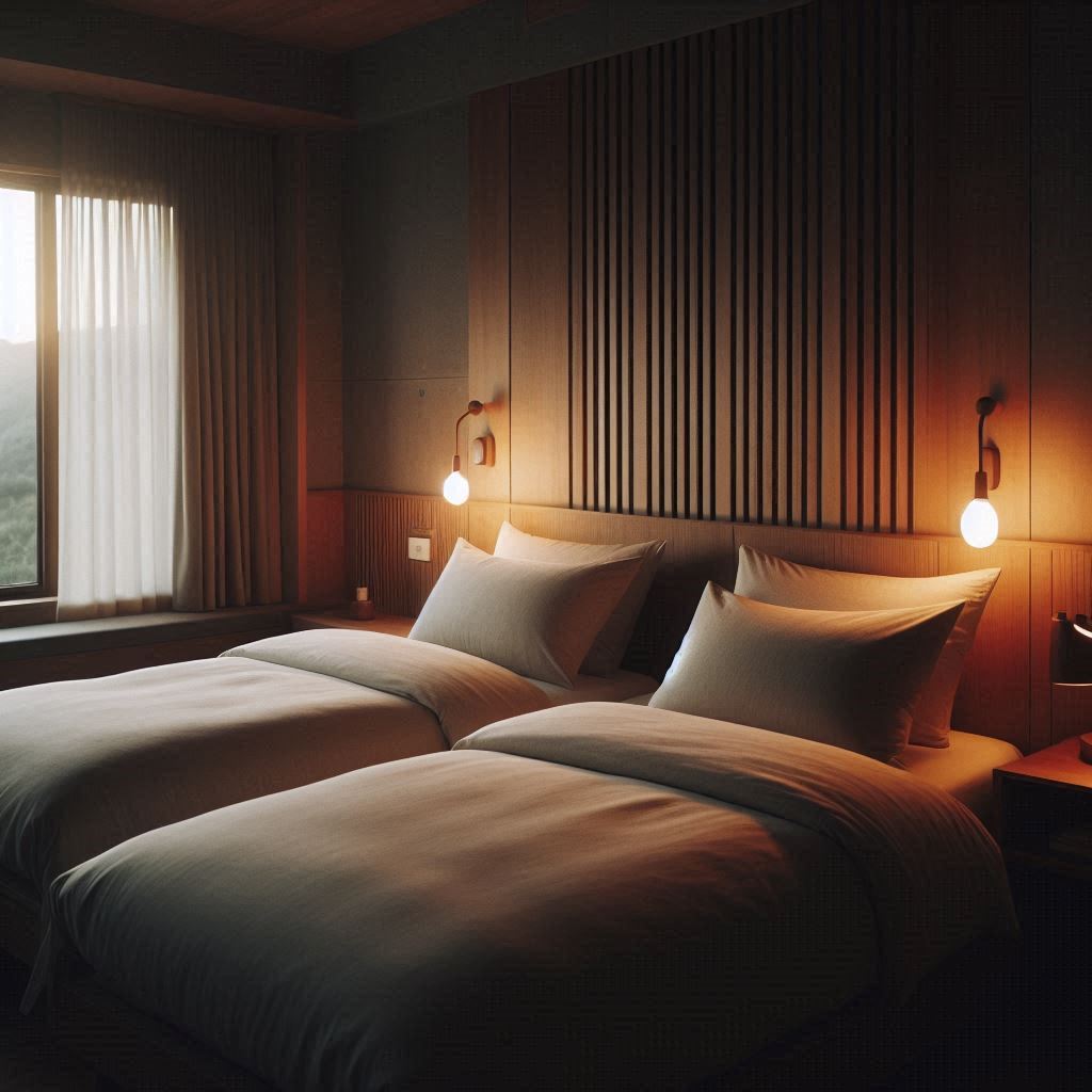 입구에서 바로 보이는 무인 체크인 기기 덕분에 복잡한 안내 없이 절차가 자연스럽게 이어졌습니다. 로비 공간은 크지 않지만 조명이 중간 톤으로 유지돼 시야가 편안했고, 바닥 질감도 일정해 복도로 이동하는 발걸음이 안정적이었습니다. 복도는 직선 구조라 방 번호가 쉽게 식별됐고, 조명 간격도 균일해 어두운 구간 없이 움직일 수 있었습니다. 객실 문을 열었을 때 실내 공기가 부드럽게 순환하며 답답함이 없었고, 커튼 뒤쪽에서 들어오는 빛이 방을 차분하게 밝혀주었습니다. 스위치는 출입문 옆과 침대 양옆에 있어 조도 조절이 편했고, 가구는 벽을 따라 배치돼 있어 이동 동선이 막히지 않았습니다. 실내 온도 역시 이미 적당히 맞춰져 있어 별도 조작 없이도 자리에 바로 앉아 쉴 수 있었습니다.